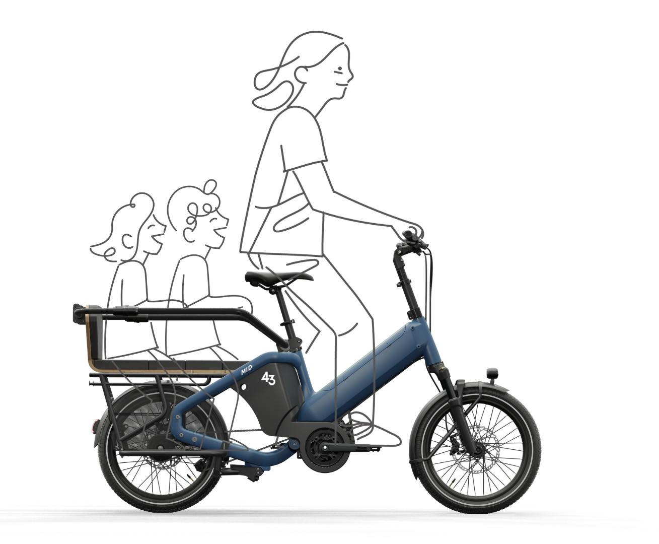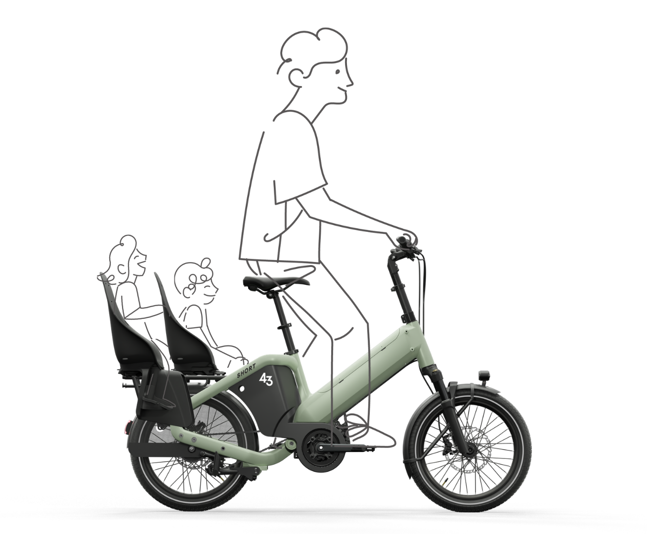 The feet of the first child are protected under the saddle, making the bike compact (-15cm) and safer.