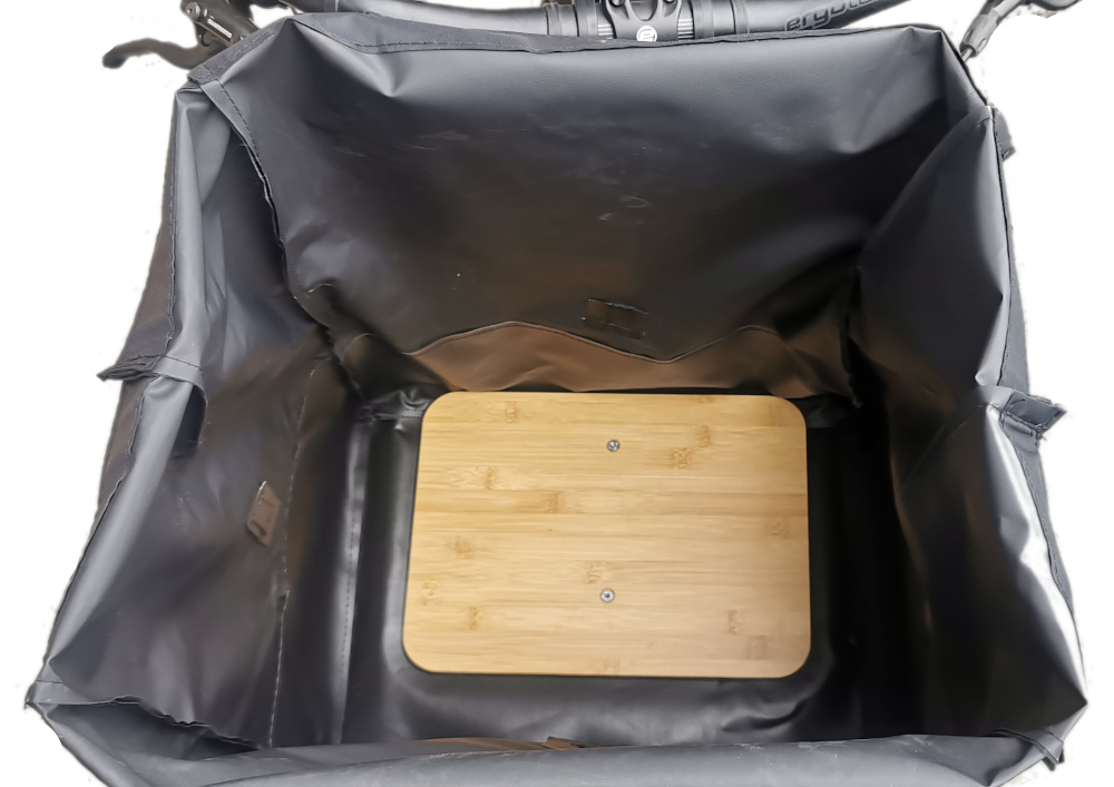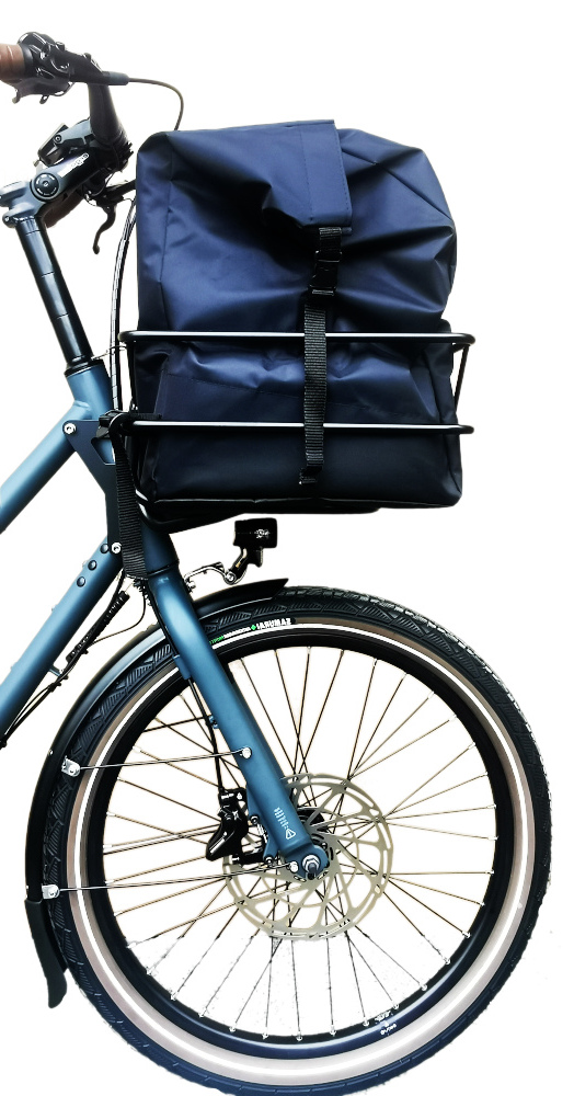 Die Front Bag passt in den vorderen Korb, sie hat ein Volumen von 35 Litern. Lassen Sie die Tasche auf dem Fahrrad und verwenden Sie es als ein Behälter für Sachen. Sie ist leichter als ein Korb und sieht auch besser aus. Der Stoff ist wasserabweisend. Es gibt Riemen an der Seite und einen oben, um den Inhalt nach unten zu drücken und zu verhindern, dass er in die Bremshebel gerät.