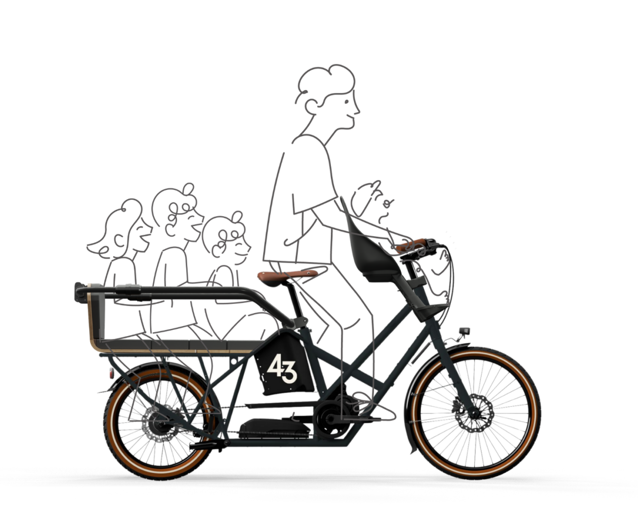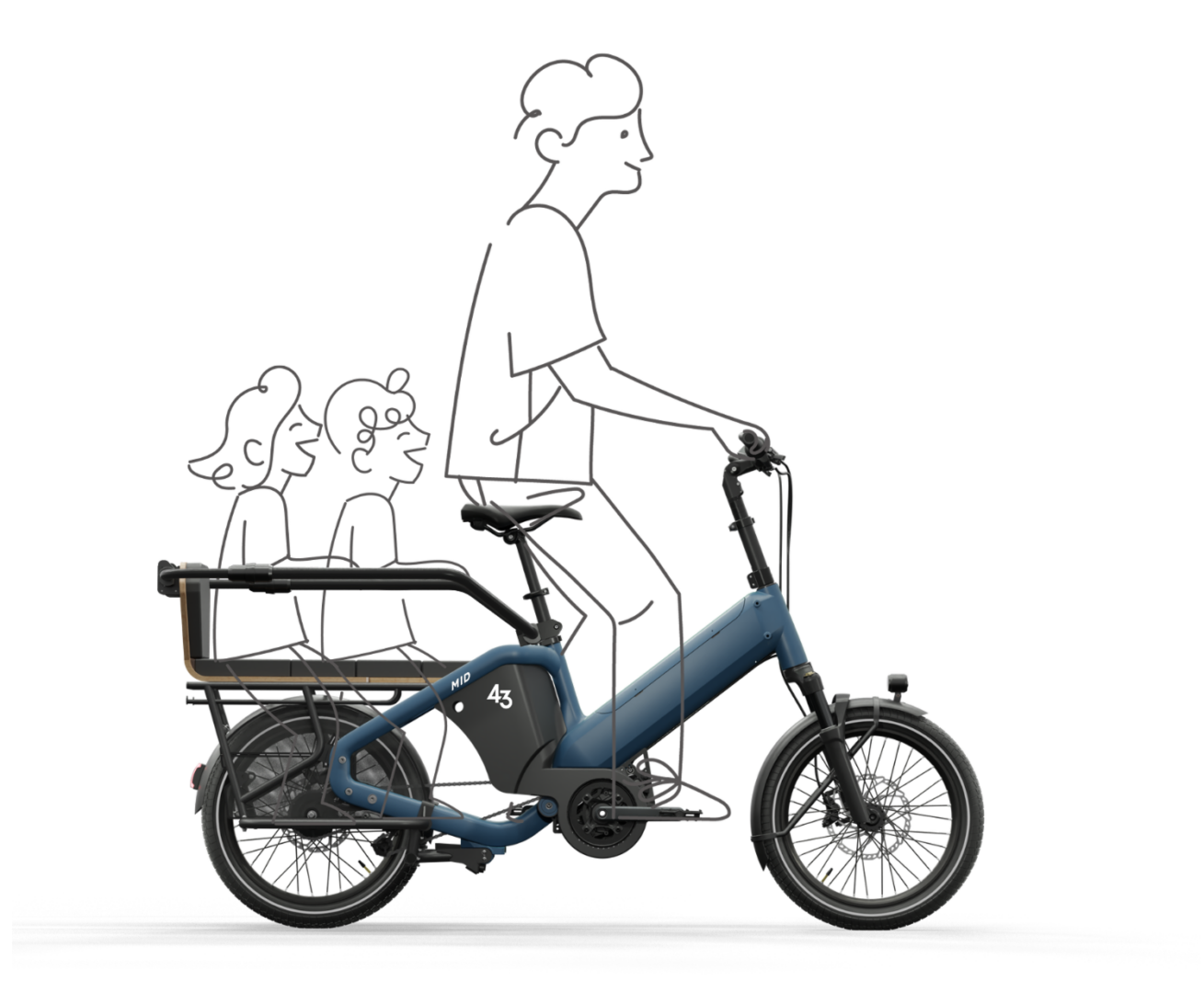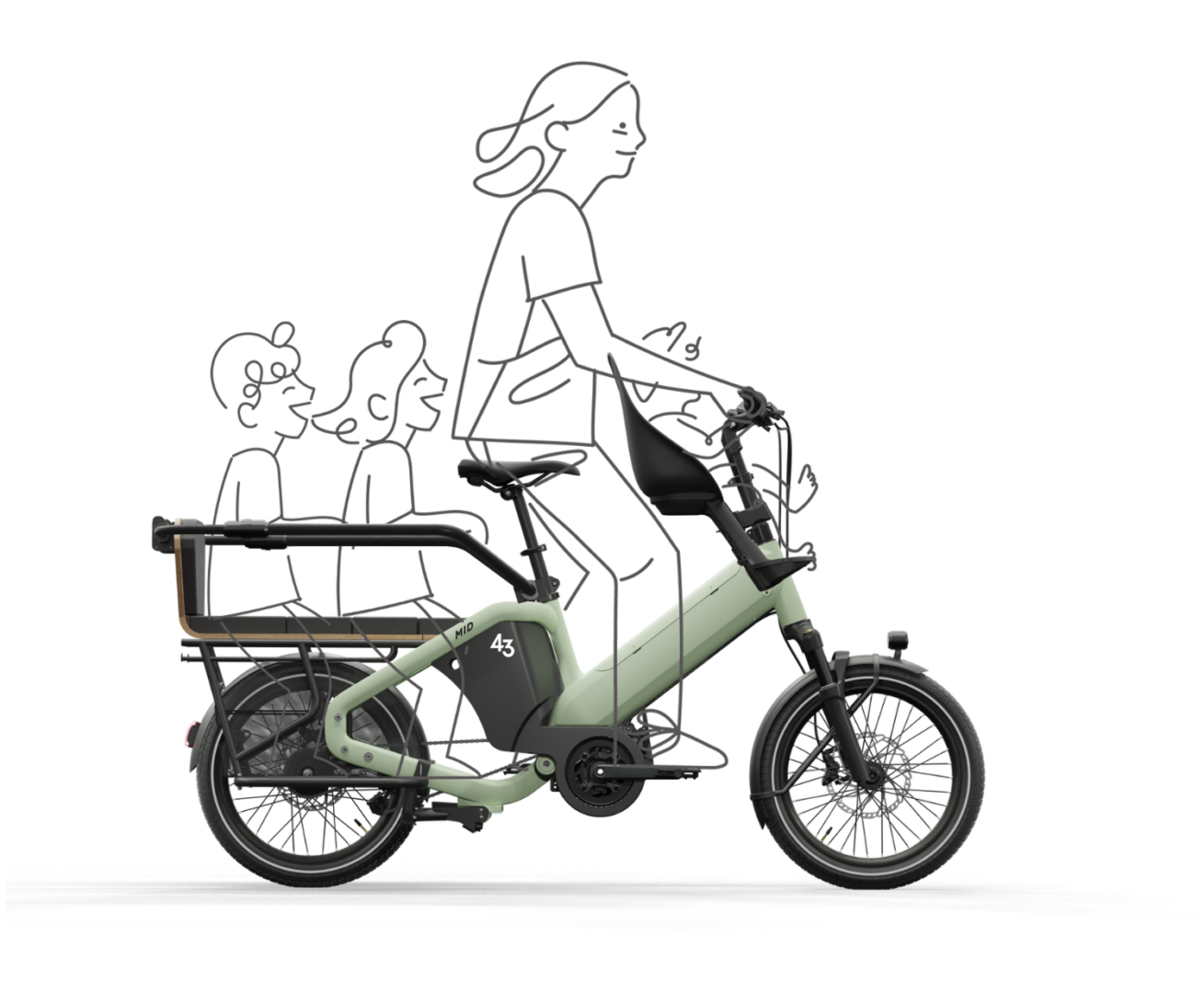 Les pieds du premier enfant sont protégés sous la selle, à l’écart des pédales. Une astuce qui rend le vélo plus compact (-15 cm) et encore plus sûr.